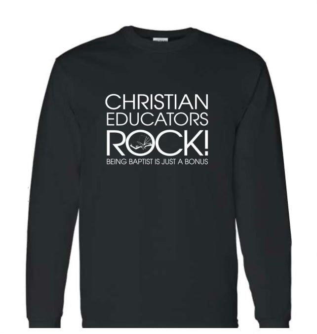 Christian Educators ROCK! Long sleeve Tshirt_Black