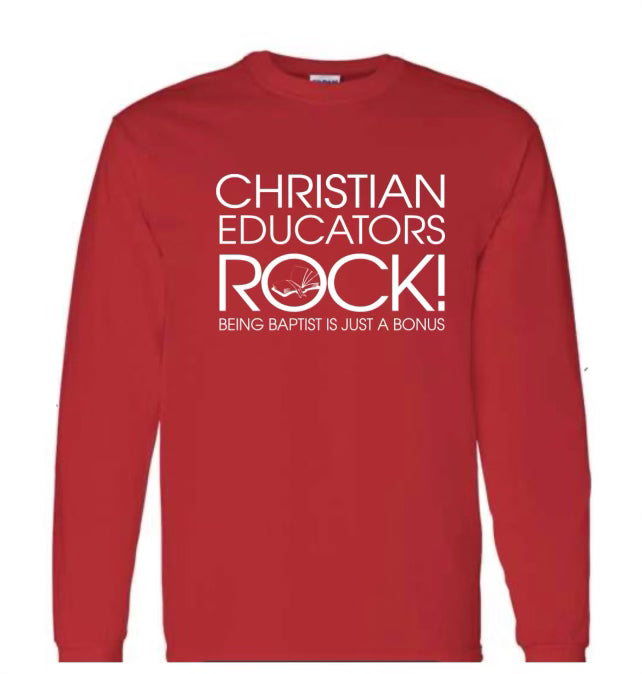 Christian Educators ROCK! Long sleeve Tshirt_Red